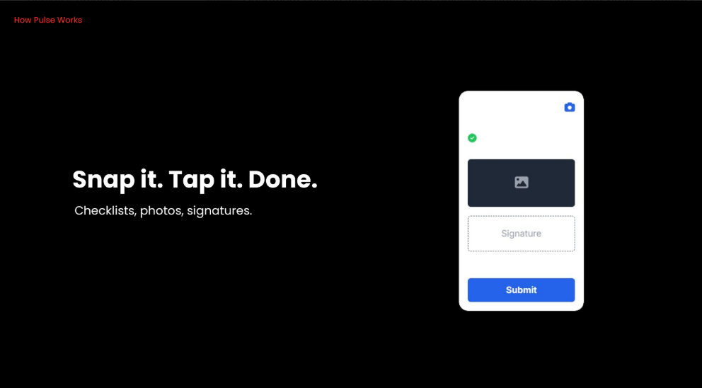 No. We know field users often work in customer-facing or time-sensitive environments like hotels, warehouses, and hospitals. Pulse's mobile interface is ultra-simple and designed for fast use—even during hectic shifts.